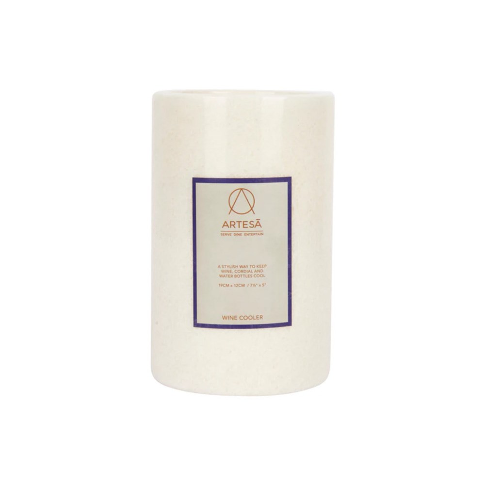 Introduce timeless elegance to your beverage service with the Artesa Marble Wine Cooler White 120x189mm. It is a premium accessory designed for hotels, restaurants, and event venues. Crafted from natural white marble, it keeps the wine at the ideal serving temperature without the need for ice or electricity. Its design blends seamlessly with a variety of table settings, making it a versatile choice for fine dining setups.