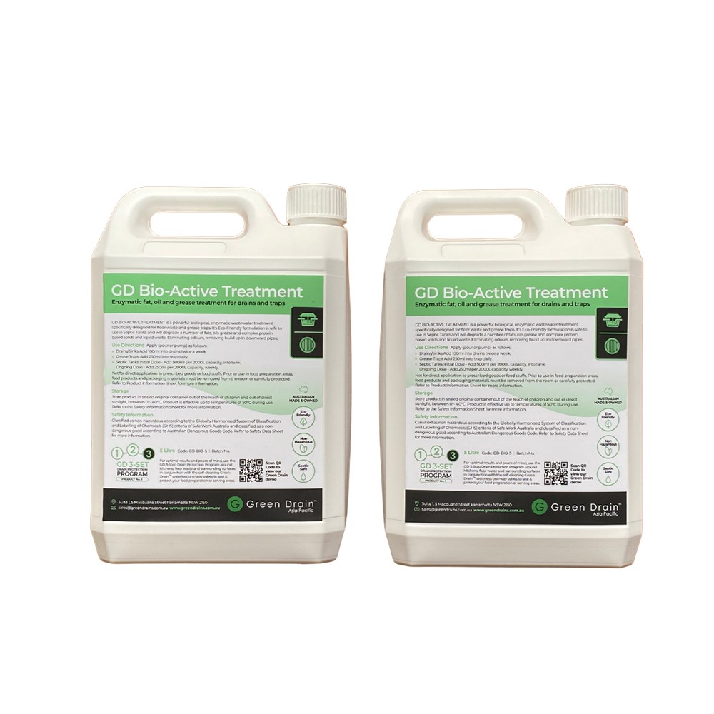 Bio Active Treatment 5L Green Drain is a powerful solution that goes beyond simply masking odours; it eliminates the source of unpleasant smells by addressing solid build-ups, blockages, and the downstream transfer of fats, oils, and grease. This effective treatment works across a wide pH range (5.0 - 9.8), with optimal performance between 6.5 - 8.5, ensuring reliable results in various environments.