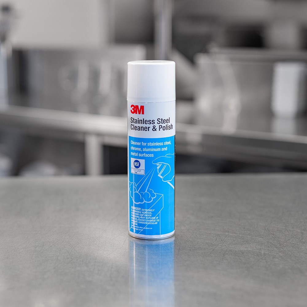 Clean and make stainless steel shine with this 3M Stainless Steel Cleaner and Polish. This product is suitable for buffet stations, display fridges, serving counters, elevator doors, and self-service areas. Suitable for use in food preparation areas, but not suited to use on utensils with direct food contact. The pleasant lime fragrance versatile spray can be used on various surfaces, including steel, chrome, aluminium, and laminated plastic.