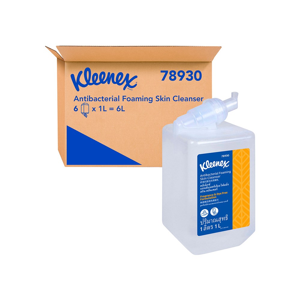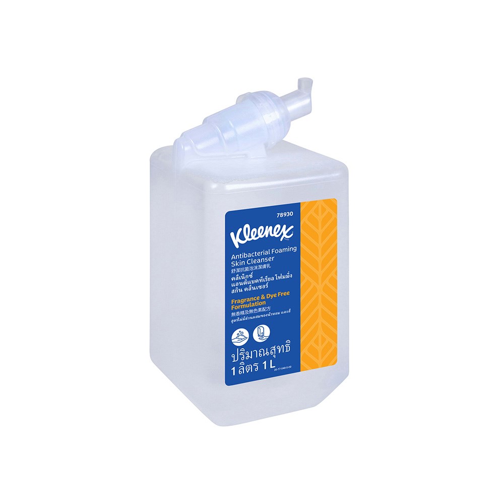 Maintain workplace hygiene with the Kleenex Antibac Foam Skin Cleanser 1L. This foam antibacterial skin cleanser is hypoallergenic with a fragrance-free formulation, perfect for sensitive skins. The formulation contains added moisturising ingredients and is effective against a wide variety of bacteria. The sealed cartridges protect the soap prior to use and controlled dispensing is designed for increased efficiency and ease of use. It is also compatible with compact and easy-to-use Kleenex dispensers, suiting many locations.