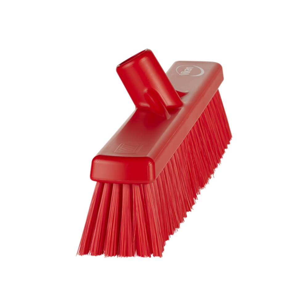 The Vikan Medium Broom Head 435mm in red colour can remove dry substances like flour, starch, and other fine powders commonly found in food production. Its medium-stiff bristles strike the right balance between firmness and flexibility, ensuring effective cleaning without damaging surfaces. It is compatible with any Vikan handle and is ergonomically designed for easy use and storage. Food grade certified and is available to use in any environment, especially in hygiene-sensitive facilities. Available in other colours, which is perfect for coded options to prevent cross-contamination