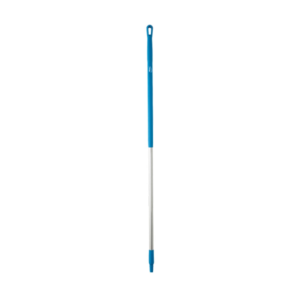 The Vikan Aluminium Heavy Duty Handle in blue presents a comfortable grip and rounded top and hanger. This handle fits any Vikan product that requires a handle. It has a hanger hole for easy storage. Its ergonomic design and optimal handle size offer a non-slip part for secure and two-handed use.