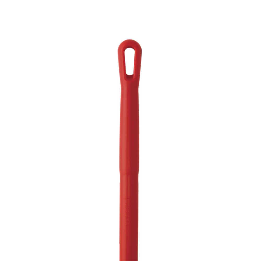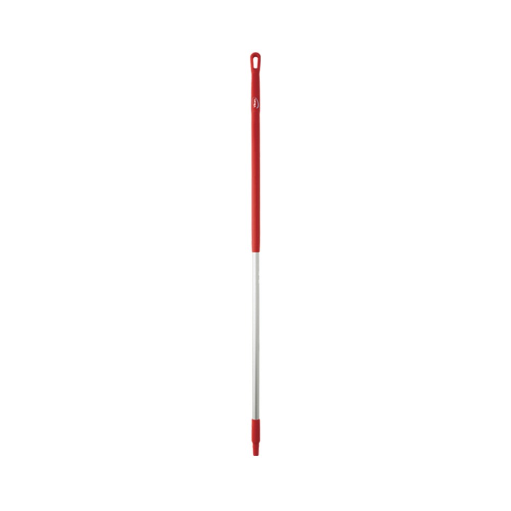 The Vikan Aluminium Heavy Duty Handle in red presents a comfortable grip and rounded top and hanger. This handle fits any Vikan product that requires a handle. It has a hanger hole for easy storage. Its ergonomic design and optimal handle size offer a non-slip part for secure and two-handed use.