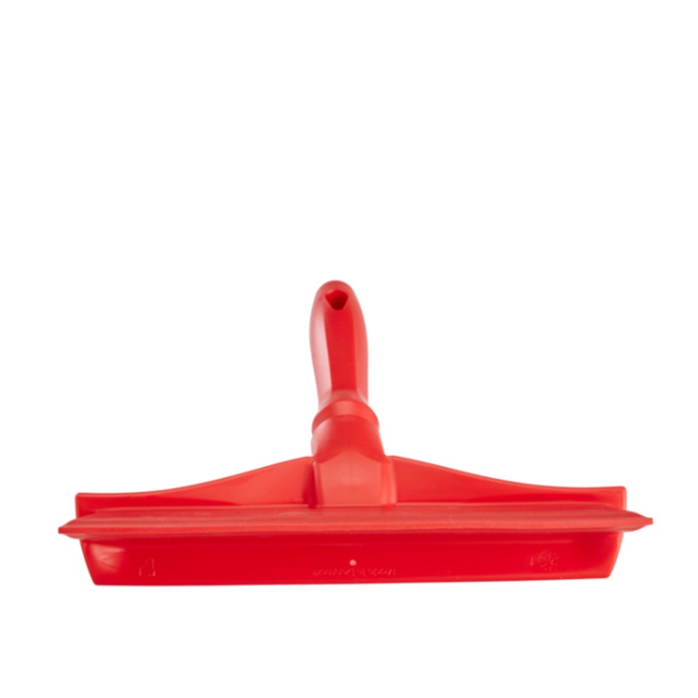 The Vikan Single Blade Hand Squeegee 245mm in colour red is a hygienic squeegee suitable for removing excess water and food debris from food-preparation surfaces. It has a soft and flexible blade, and it is fully moulded to ensure it is easy to keep, even after repeated use. Features a sharp and smooth edge made to lift water and food debris without streaking.