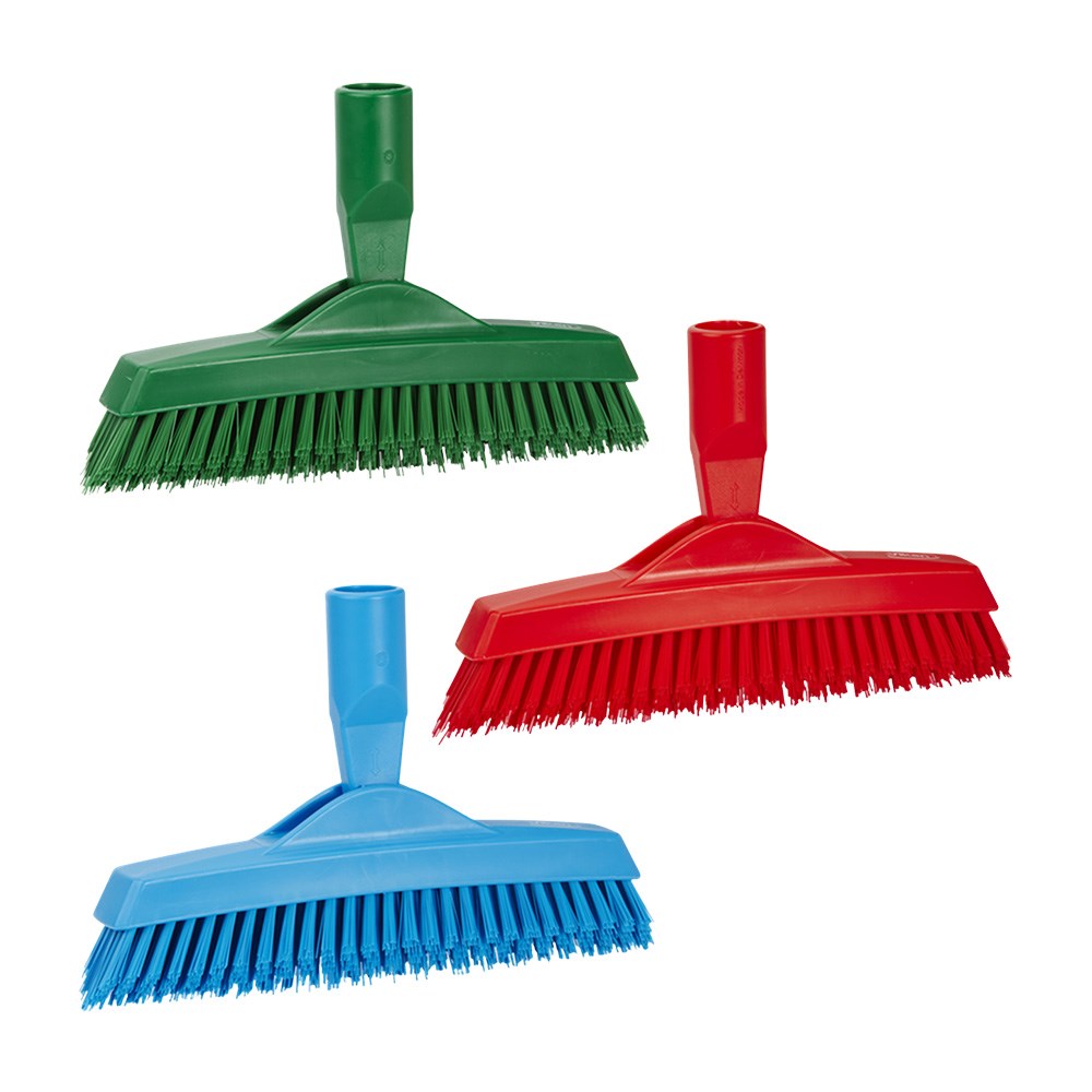 Clean effectively beneath and between machinery and equipment with the Vikan Crevice Brushes with Extra Stiff Bristles 225mm. Featuring an adjustable angle, this specialised brush can be used with the handle positioned parallel to the floor, ideal for accessing tight spaces under equipment and along edges without sacrificing cleaning pressure. The arrow-shaped filaments penetrate narrow cracks and crevices with precision, while the central row of extra-stiff bristles delivers powerful scrubbing performance for stubborn debris.