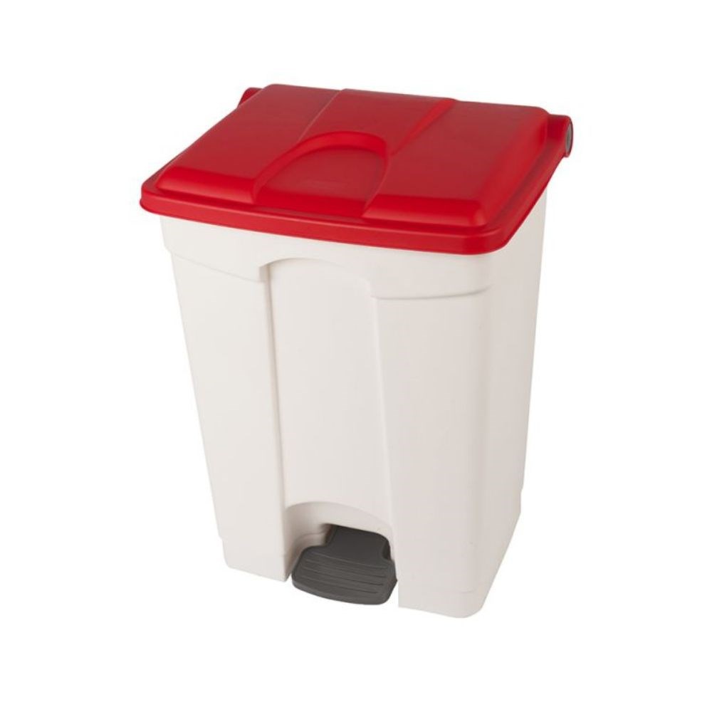 Pedal Bin Plastic White Base Red Lid 70L Probbax