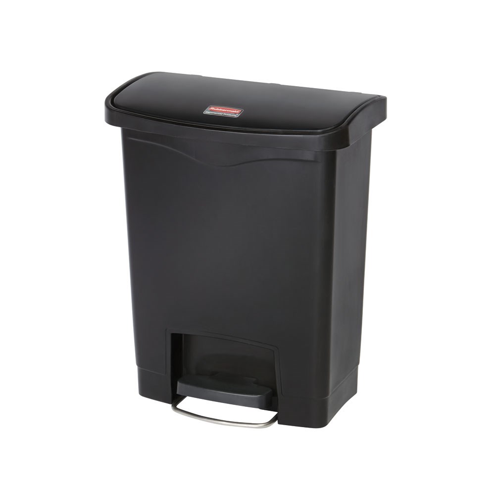 The Slim Jim 30L Front Step Bin Black Rubbermaid is built for efficient, hands-free waste disposal in compact spaces. Its slim design and small footprint make it ideal for hospitality, healthcare, and commercial use. The large foot pedal provides easy access, while the tight-fitting lid closes softly to minimise noise. An internal hinge protects walls from damage for a neat and safe setup.