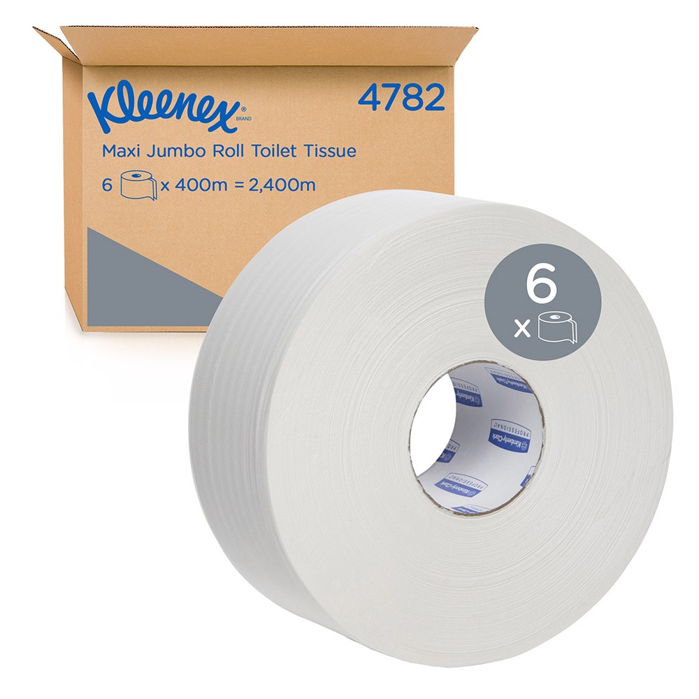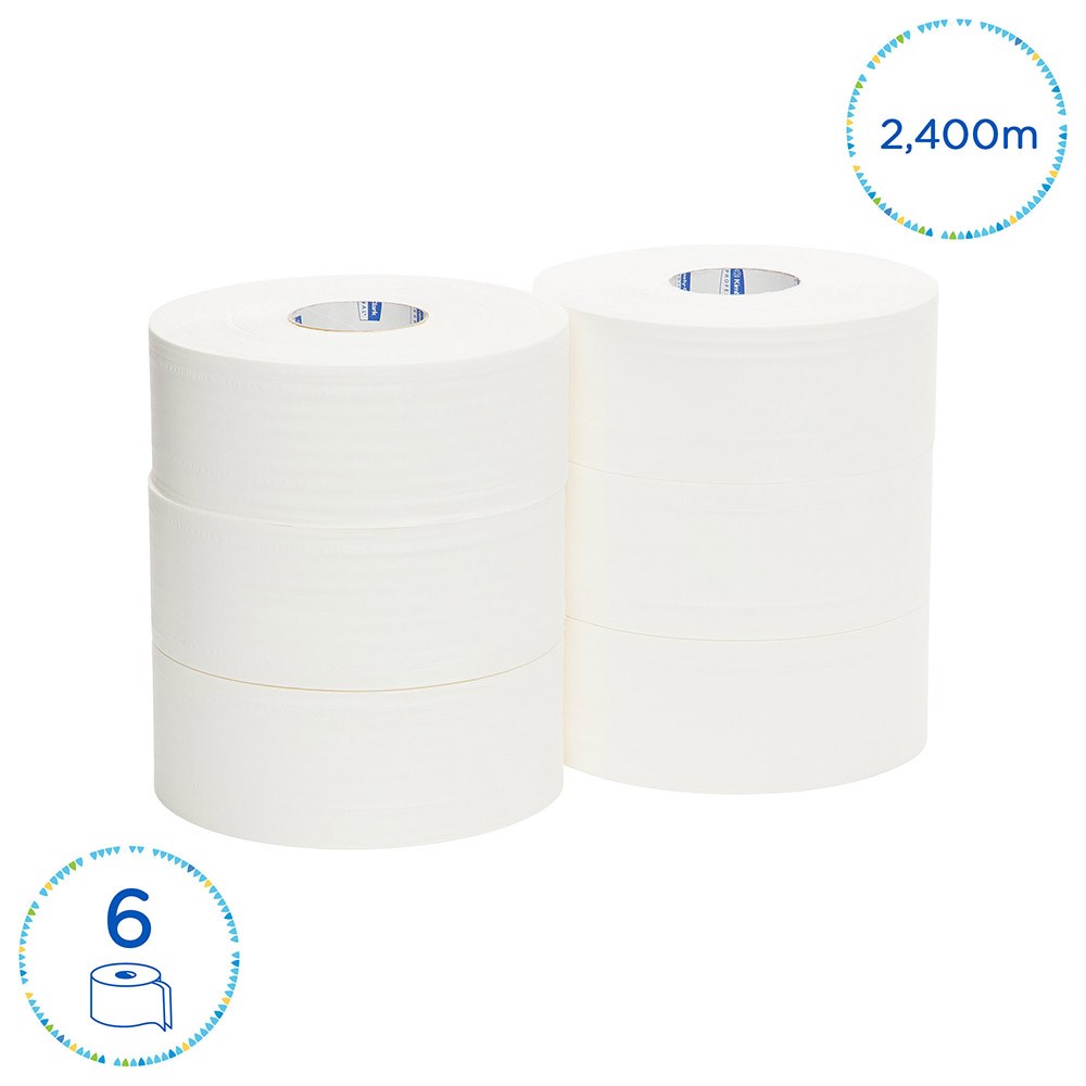 Each roll contains 400m of KLEENEX® Jumbo Toilet Paper, which is ideal for use in high traffic areas and to reduce maintenance during peak times. This 2-ply toilet tissue provides improved comfort, superior softness and absorbency. Proudly FSC® certified. Compatible with selected Kimberly-Clark Professional® jumbo toilet roll dispensers.