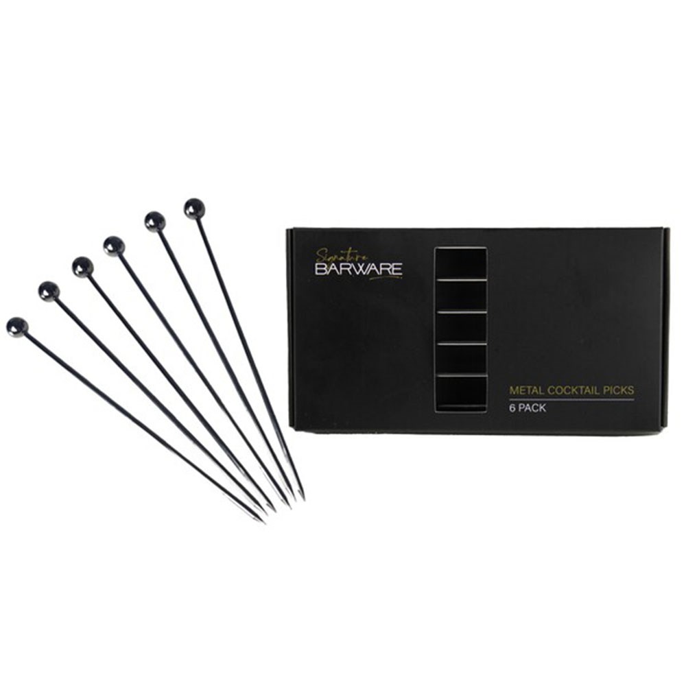 Enhance your cocktail experience with these black chrome Reusable Stainless Steel Metal Picks. Perfect for both appetisers and cocktails, these picks come in a pack of 6.