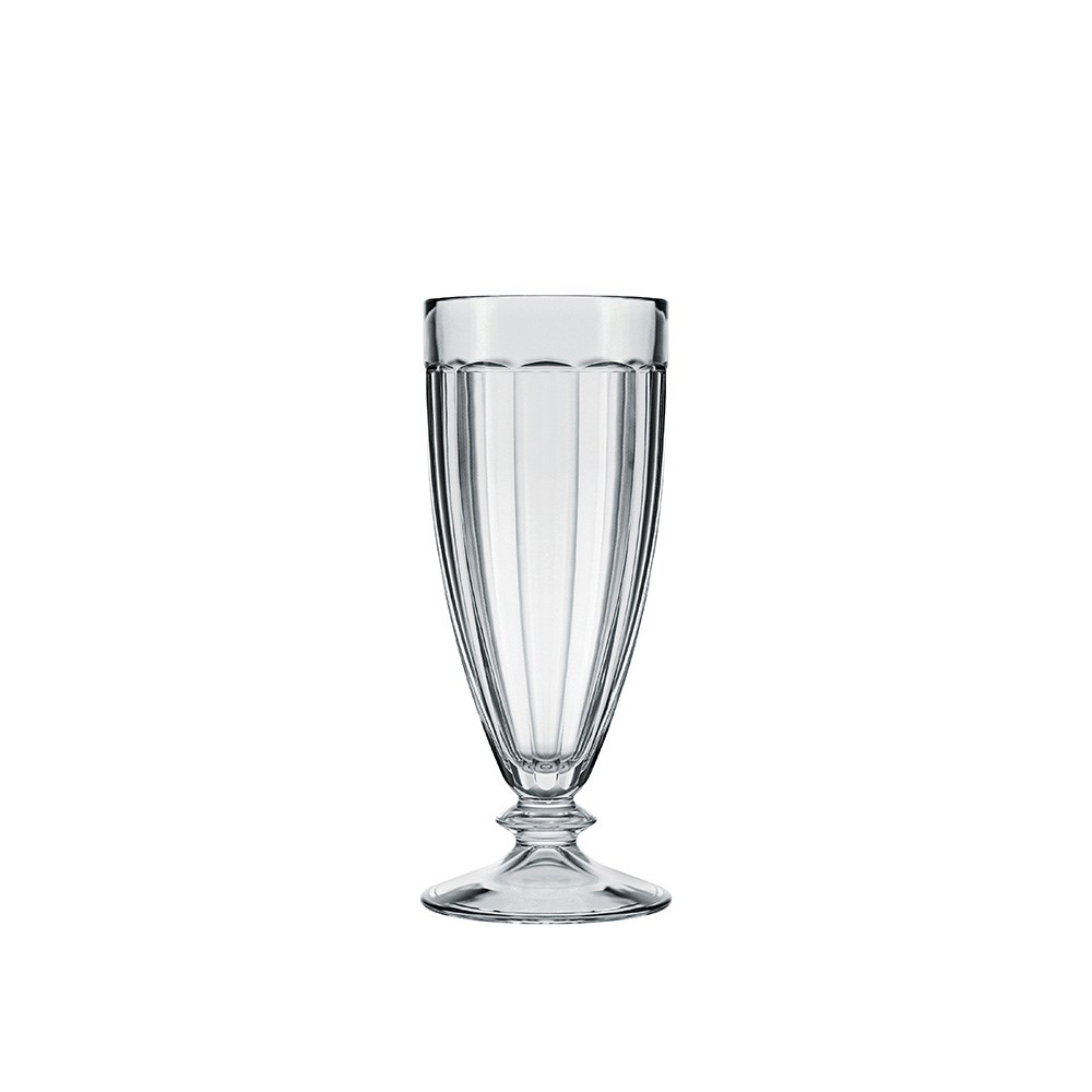 The tall shape provides plenty of room for whipped cream, syrups and garnishes, helping venues create more appealing, high-value beverage presentation. The stemmed base gives the glass a classic retro look while making it easy to handle during service. Constructed to withstand repeated commercial dishwashing, the Nadir Tropical Milkshake Cup maintains its clarity even in high-turnover service environments