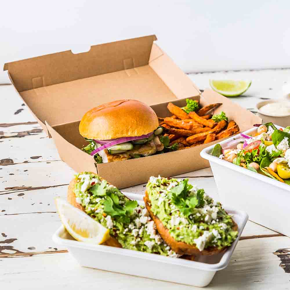 From clam boxes and compartment trays to packaging for hot foods, Earth Essentials takeaway solutions are built for performance while reducing environmental impact. Suitable for takeaway, delivery, food trucks, and events.