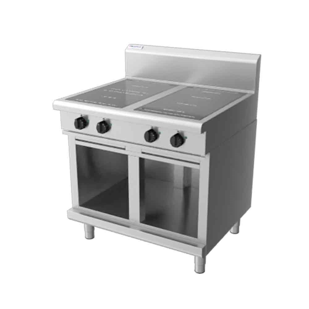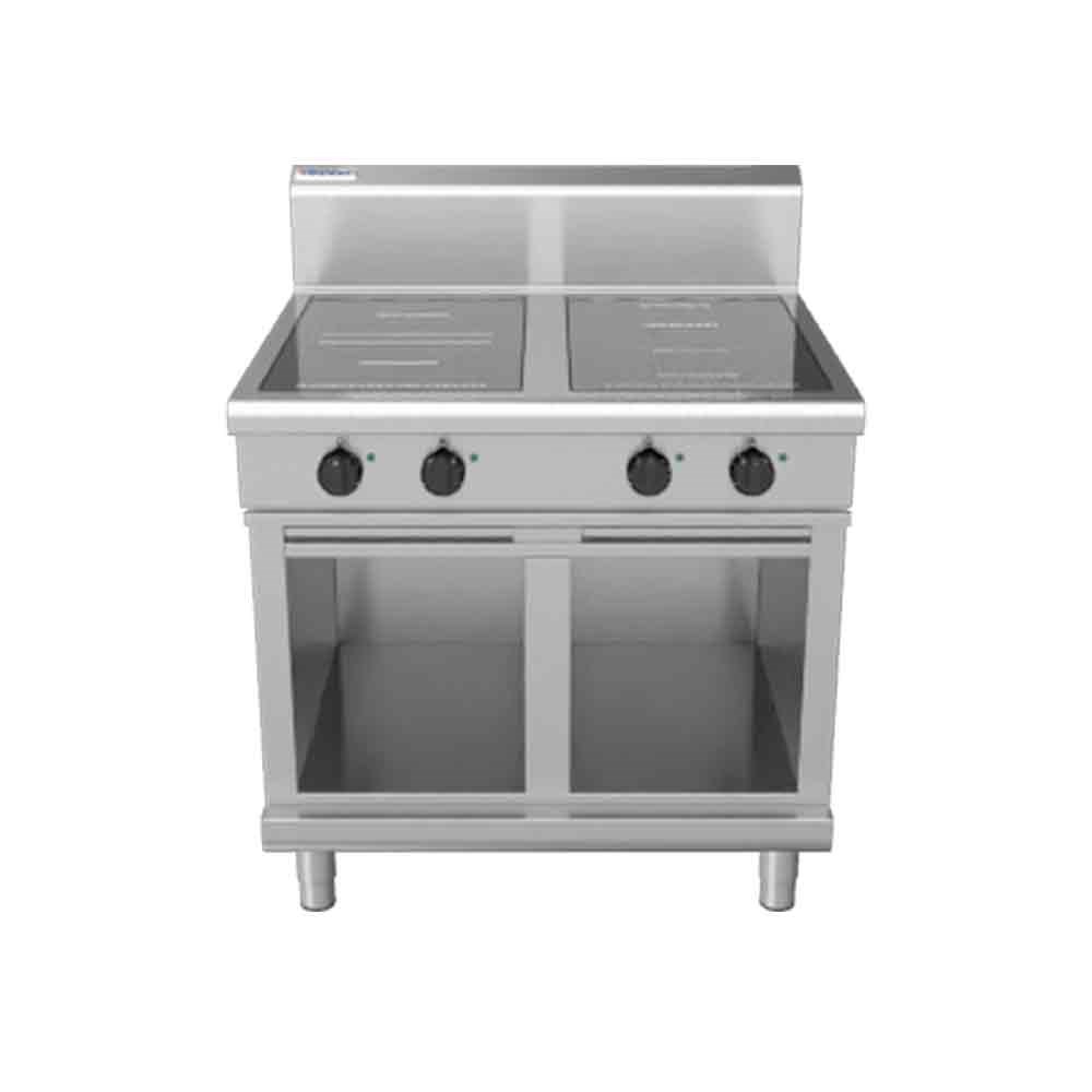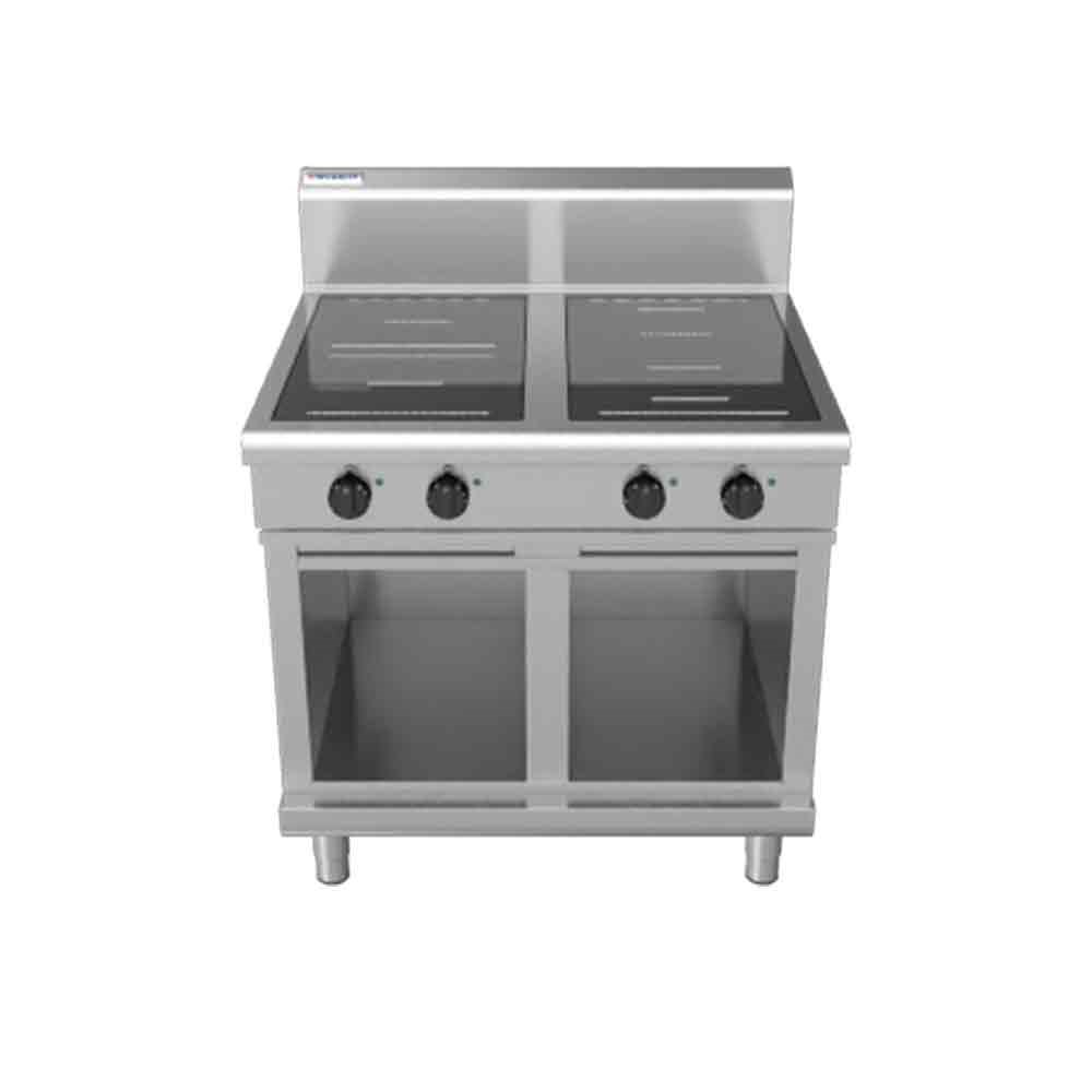 Elevate your commercial establishment with the Waldorf IN8400R5-CB electric induction cooktop with a cabinet base. Engineered for user-friendly operation, this model features four 5kW round heating zones with a 6mm thick ceramic glass cooking surface.