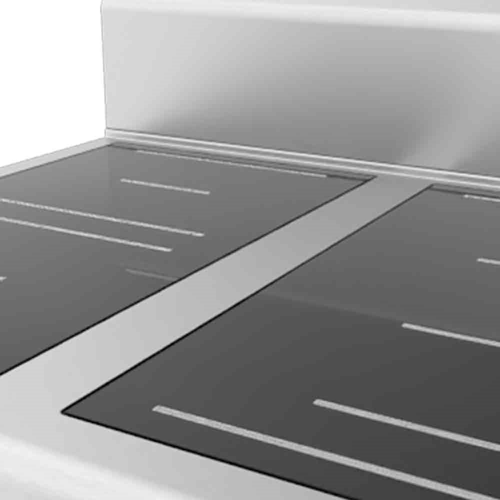 • Large easy-use control knob with infinitely variable power controls for each induction zone
