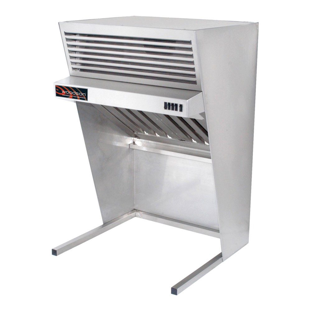 The Woodson Filter Hood Countertop 750mm is designed with a durable 304-grade stainless steel construction, seamlessly fitting over existing countertop equipment. Featuring a ductless design, it efficiently draws air through multistage filters and returns it to the kitchen through front-facing louvres, improving air quality by capturing cooking emissions and reducing greasy deposits on surfaces. This unit is ideal for use in environments where ducted exhaust systems are not required, as per the National Construction Code (NCC). It includes LED lighting, a multi-speed fan, and is compatible with countertop electric cooking appliances within the power limits set by the NCC. Regular filter inspection and maintenance are essential for continued performance, and it is important to ensure the unit is used only with appropriate equipment and in accordance with installation guidelines.