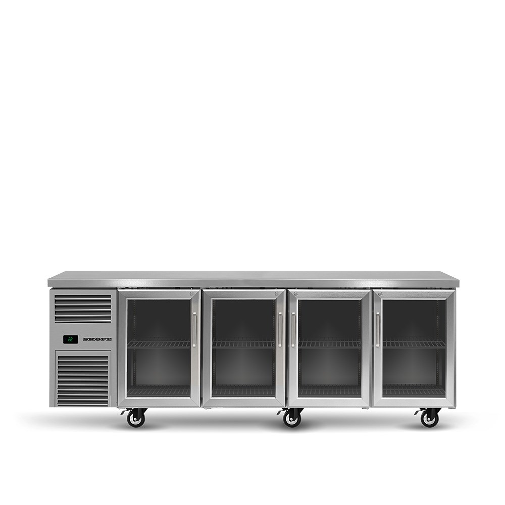 Powered by SKOPE-connect technology, operators can adjust temperatures between 1°C and 4°C, or select enhanced pre-set ranges for seafood, chocolate, dairy, drinks and more. The removable side-mounted refrigeration cartridge ensures quick servicing, reducing downtime and maintenance costs. The SKOPE ReFlex 4 Glass Door Undercounter Fridge is designed for professional kitchens, bars, cafés and foodservice prep areas that require efficient chilled storage.