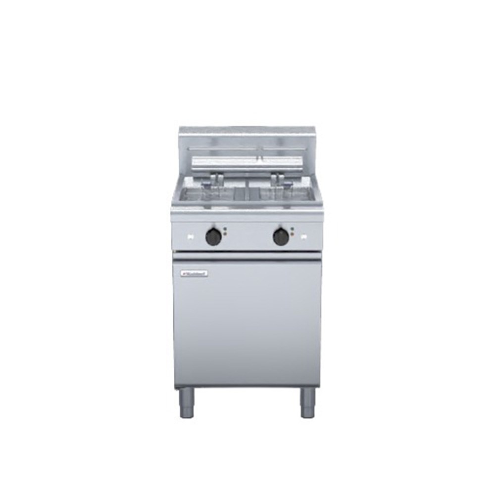 With its precise electronic thermostat control (90-190°C) and easy-to-use drain valves, it's built for efficiency and durability. Supplied with two large baskets and adjustable heavy-duty legs, this fryer offers versatile, consistent performance for busy kitchens.