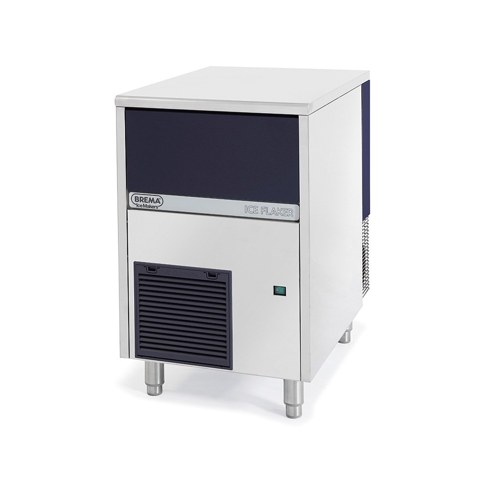 Brema Granular Ice Flaker with Internal Storage Bin offers 95Kg of ice production per 24 hours and 30Kg storage capacity. Includes external water filter. Self contained ice maker with outstanding reliability and quality backed by a 3 year warranty. Cutting edge Italian design and manufacturing. Tropical class +43 degrees celcius rated. Efficient water to ice ratio - 1 litre of water makes 1 kg of ice. Great for exhibiting and presenting foods as well as for use in medical industries. The ice has a fast and efficient refrigerating effect and is easy to handle and dose.
