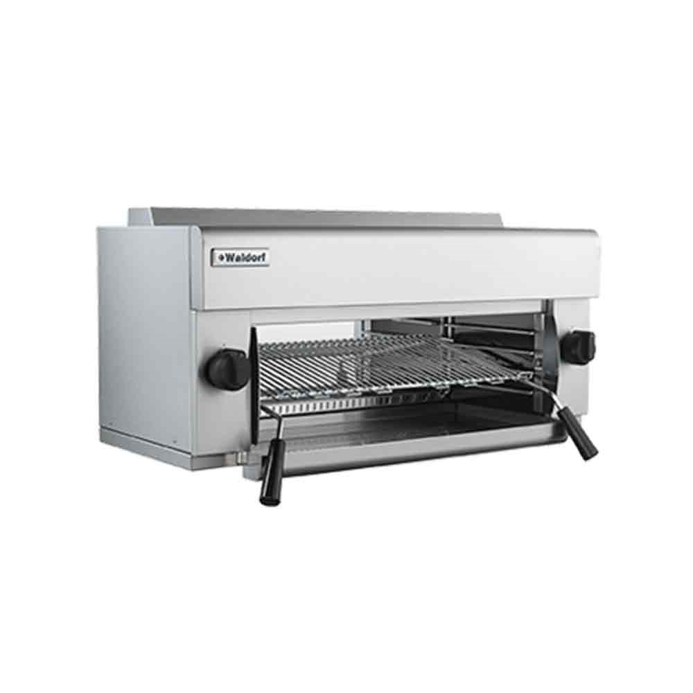 Experience the versatility of the Waldorf 800 Series Salamander range. The 900mm gas model features 2x 15.5 MJ/hr infrared burners, adjustable racking, and easy-to-use controls, providing precise and efficient heating. It includes piezo ignition and flame failure protection on each burner for safer operation.
