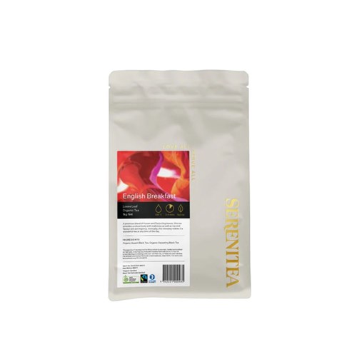 This SereniTEA English Breakfast tea is a premium blend of Assam and Darjeeling leaves providing a robust body with maltiness as well as top end flavour and astringency. This interplay makes it a wonderful tea at any time of the day.