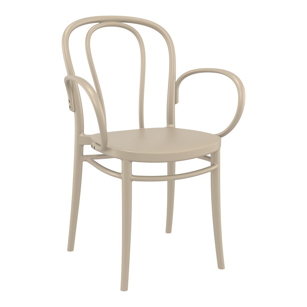 Victor XL stacking armchair is produced with a single injection of polypropylene reinforced with glass fibre obtained by means of the latest generation of air moulding technology with neutral tones. For indoor and outdoor use.
