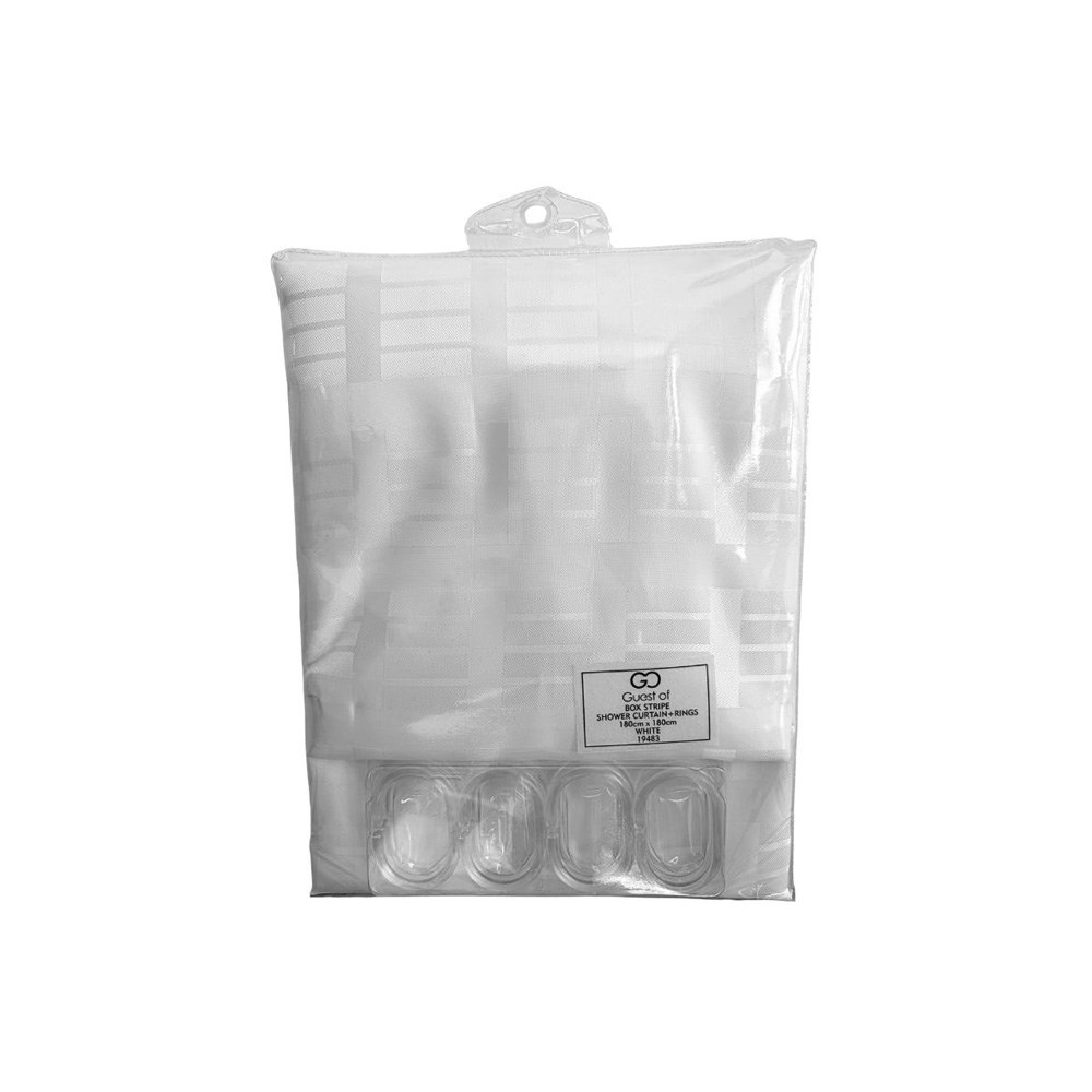 Shower Curtain White Box Stripe Polyester 1800x1800mm Choyer