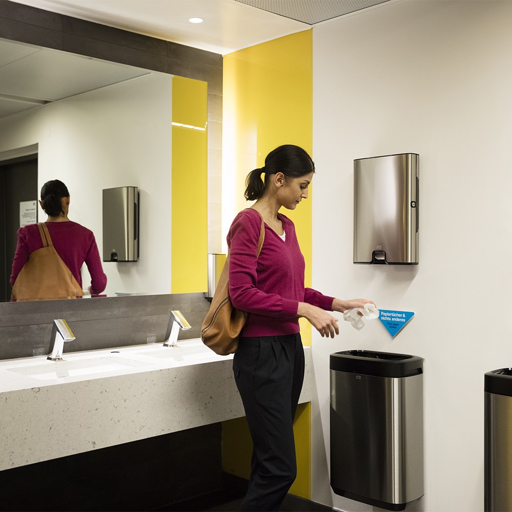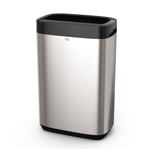 Tork 50L Image Design Bin. Modern design with smooth surfaces and clean lines that fits seamlessly in your washroom. Create a great impression that boosts the high-quality image of your facility. Stylish stainless steel with anti finger print coating looks great and stays clean.