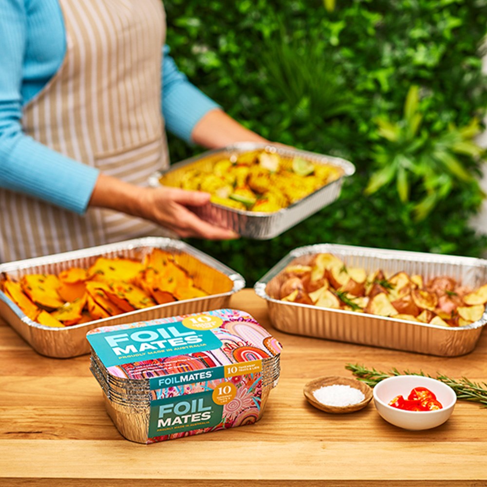 The Foil Mates Barbeque Tray (20x10) from Confoil is a high-quality and all-purpose foil tray that is suitable for ovens, barbeques, catering, and meal prep. These trays are made from food-safe materials and manufactured in safety-certified facilities. They are also environmentally friendly since staff can recycle them and only need to scrunch or fold the trays and place them in the kerbside recycling bin.