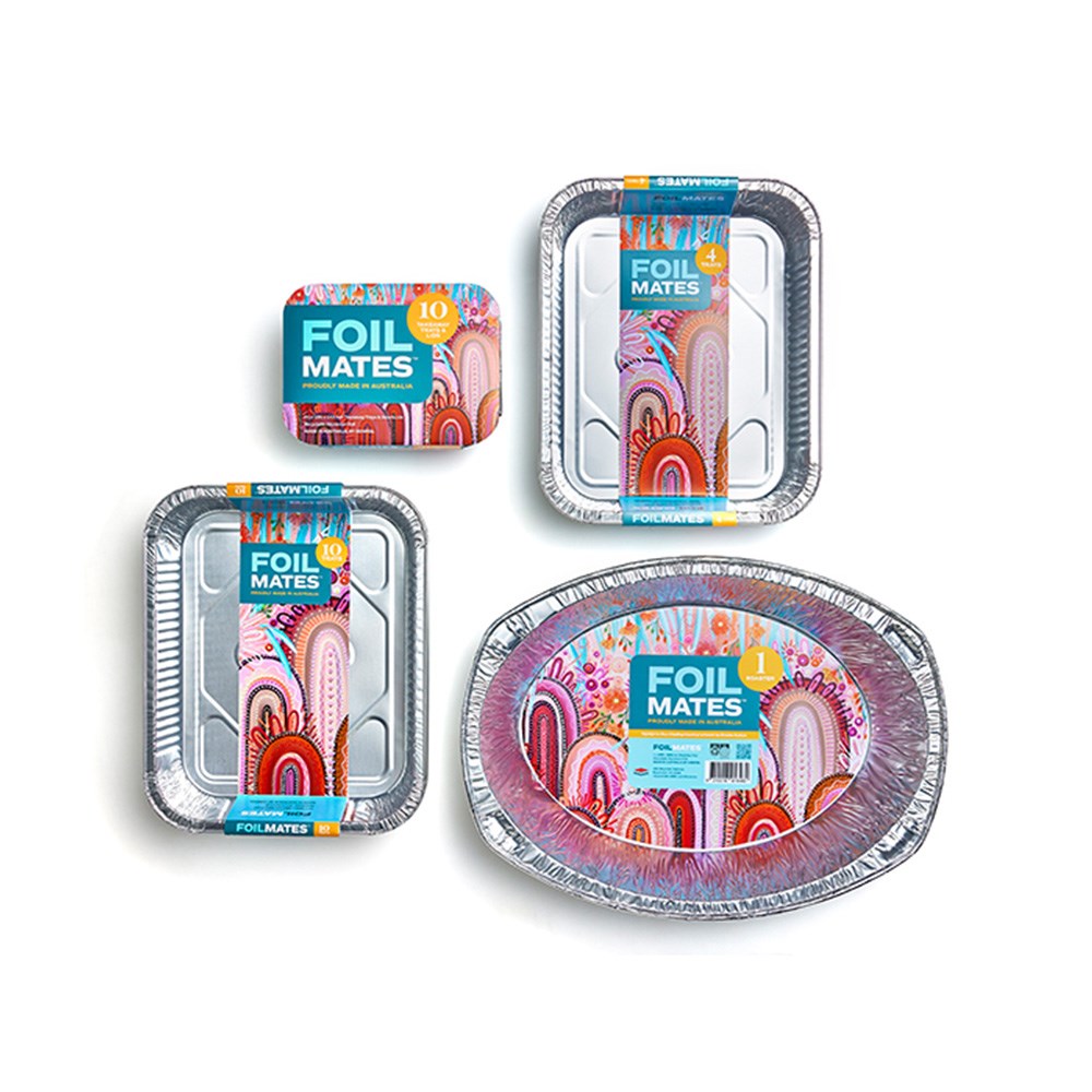 Showcasing the famous Yaptjarra artwork by Aboriginal First Nations artist Brooke Sutton, these trays feature incredible art while providing heavy-duty and leak-proof cooking and handling of dishes. Available in 28 packs per carton, perfect for ordering and stock planning, and making them suitable for food production businesses, restaurants, commercial catering services, and food trucks.