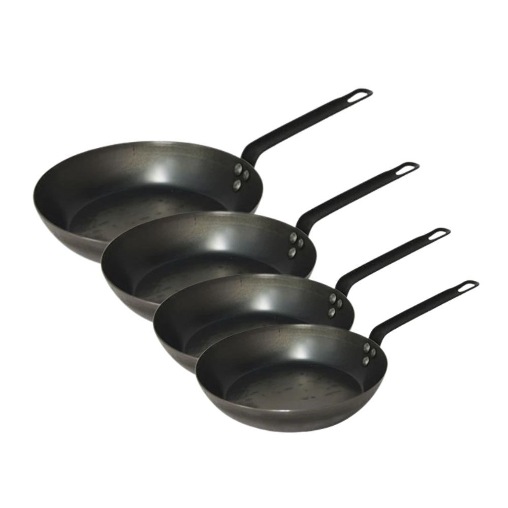 Crafted for professional kitchens, the Pyrolux Frypan Blue Steel offers excellent heat conductivity with its 1.5 to 2.0mm blue steel build. Ideal for high-heat cooking, it allows extended preheating for superb searing and develops a natural non-stick patina when seasoned.