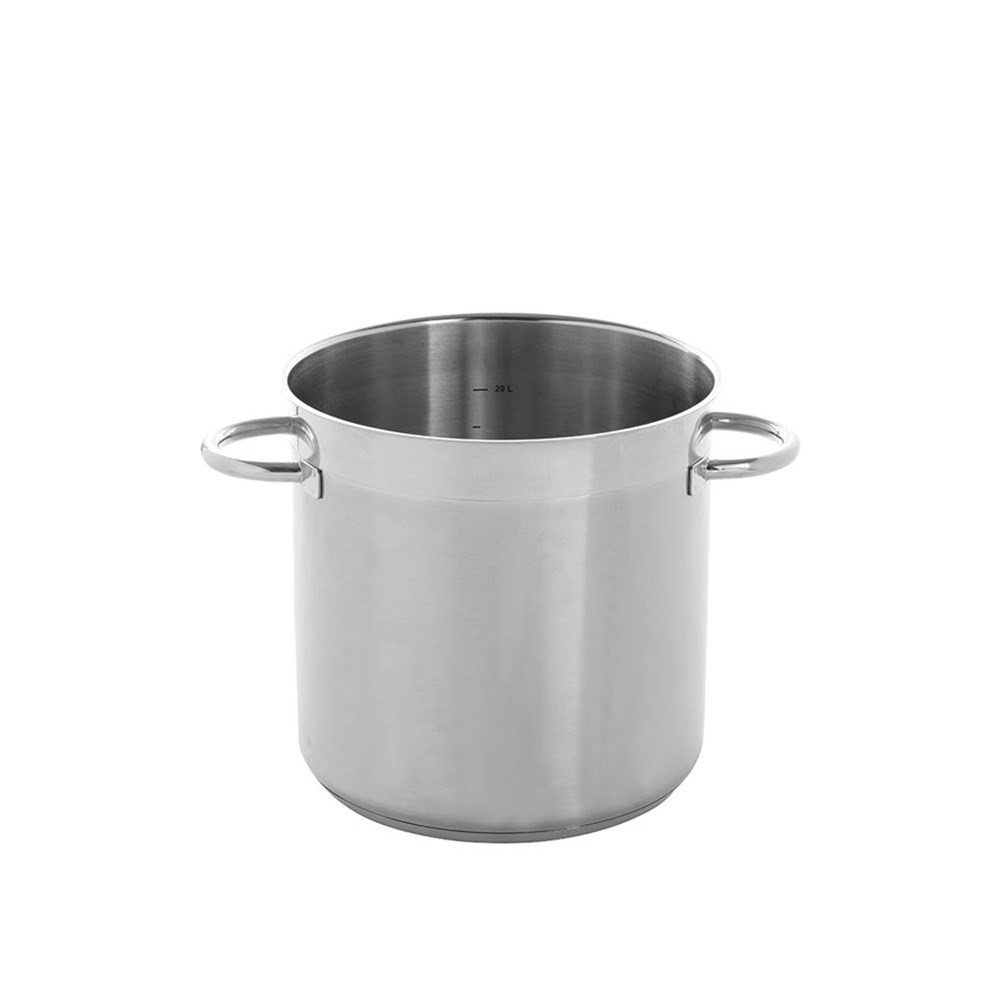 The Stockpot 25L 320x320mm Pro.cooker is part of the premium professional cookware range, crafted from durable 18/10 stainless steel for superior resistance to corrosion and food acids. Its triple-layer encapsulated base (stainless steel, aluminium, stainless steel) ensures even heat distribution, making it ideal for a variety of cooking tasks. The satin-polished finish with a mirror rim adds a touch of elegance, while the reinforced pouring rim enhances practicality.