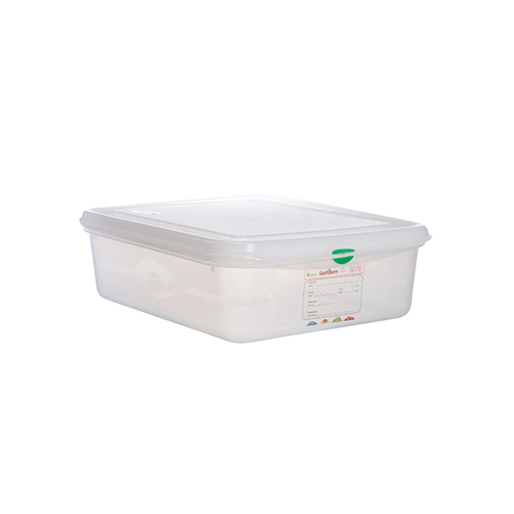 The Gastronox Airtight Container features a double lip cover for a secure closure, along with a translucent cover that provides high transparency for easy visibility of its contents. It is stackable, allowing for space-saving storage in the kitchen. An integrated food identification label enables tracking of food traceability. It is also dishwasher safe for easy cleaning, making it ideal for restaurants, bakeries, cafes, pastry shops, and catering services.