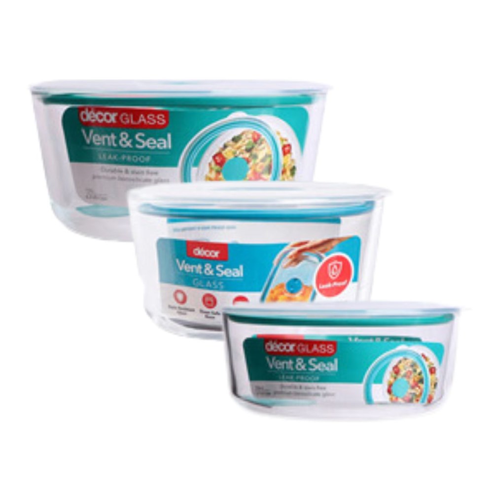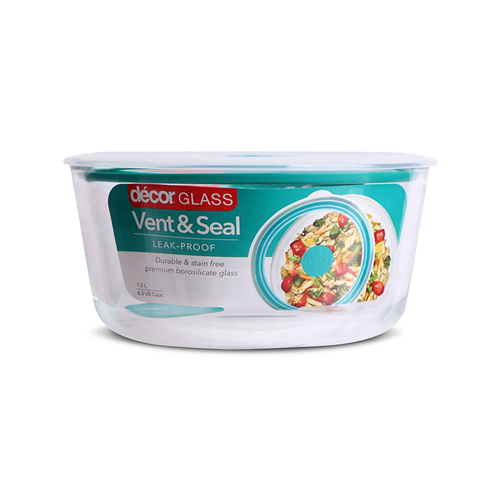 Vent & Seal Round Container 1.5L 188x91mm Glass Decor 2663940