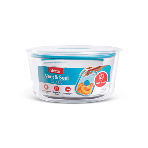Vent & Seal Round Container 500ml 125x80mm Glass Decor 2663938