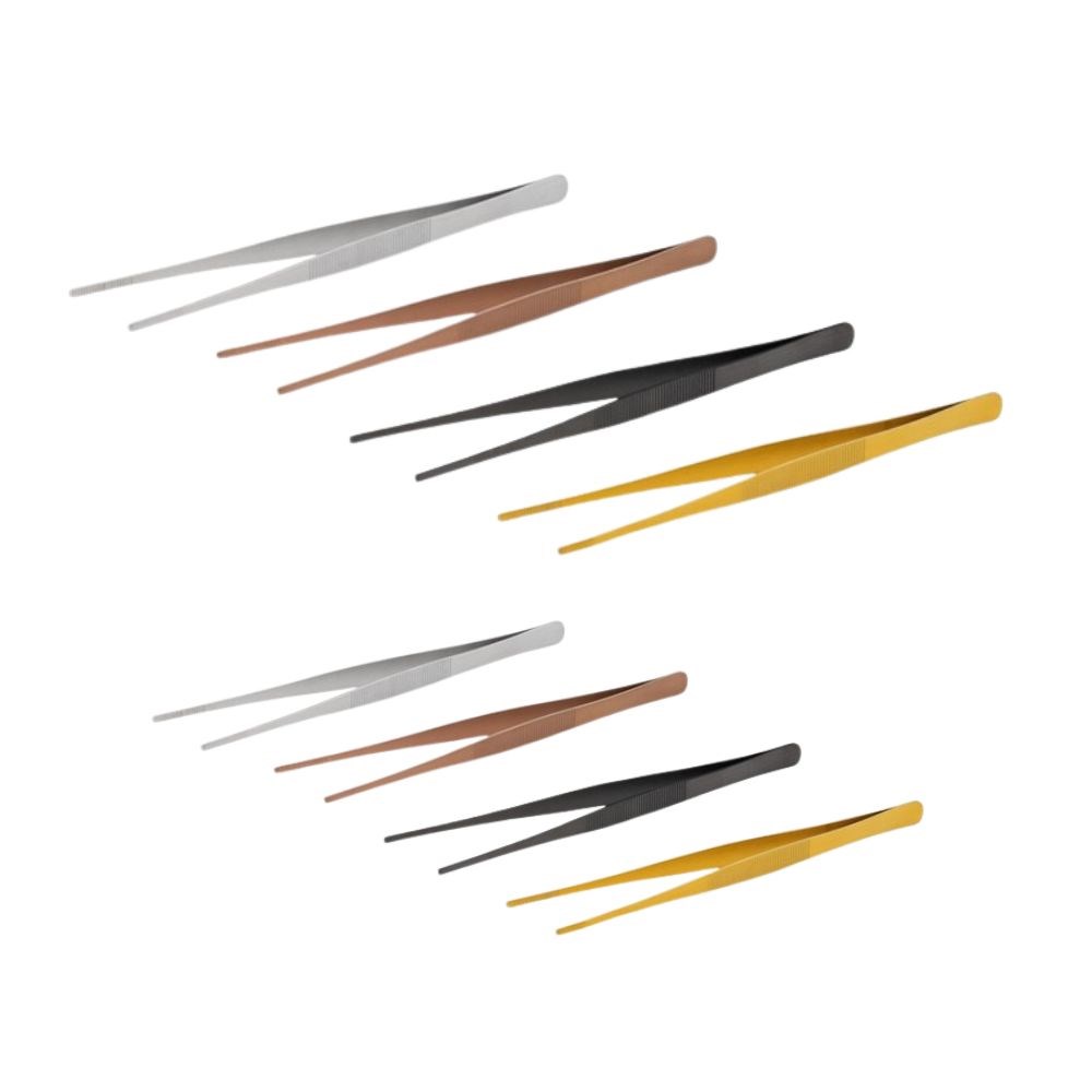 The straight profile ensures control and accuracy, while grooved grips enhance comfort during prolonged use. Available in 250mm and 300mm lengths, these tweezers come in a choice of Stainless Steel, Black, or Gold finishes to suit a range of service styles.