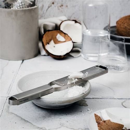 Discover the apex of kitchen efficiency with the Microplane Professional Series Coarse Grater, your ultimate ally in culinary excellence. Crafted from surgical-grade stainless steel, which ensures prolonged service and consistent performance, this indispensable kitchen tool boasts a robust construction that stands up to the rigors of professional kitchens. Photo-etched, long-lasting, ultra sharp, stainless steel blade- Made in USA Crafted entirely from surgical grade, stainless steel Ergonomic handle for comfort Non-slip rubber feet for stability and flexibility whilst grating