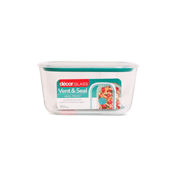 Vent & Seal Oblong Container 1L 192x135x78mm Glass Decor 2663942