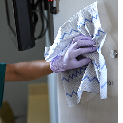 Microfibre cloths work well for cleaning activities with the bonus of being reusable making them kinder for the planet. Another advantage of using microfibre cloths or towels is the cleaning quality of their unique fibre structure designed to grip surfaces and pick up 99% of bacteria with just water.
