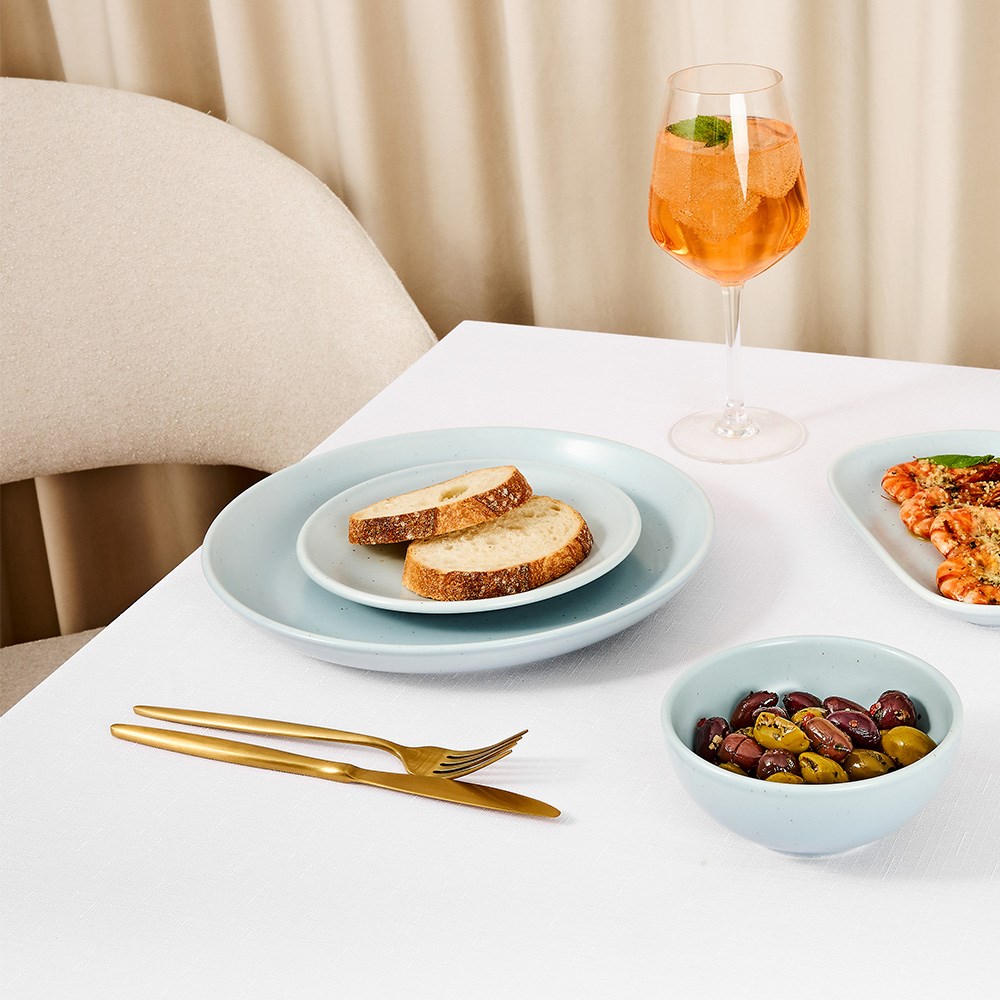 Elevate your tabletop presentation with the Infusions Coupe Bowls Juniper by Accolade. These coupe bowls combine modern design with commercial-grade durability, ideal for restaurants, cafés, hotels, and catering venues. Crafted from fully vitrified, alumina-rich porcelain, they provide exceptional chip resistance and long-lasting strength, making them perfect for everyday use in service environments. The soft juniper-blue hue, finished with a semi-matte glaze and gentle speckled detail, introduces a relaxed yet sophisticated look that complements coastal, modern, or minimalist dining themes.