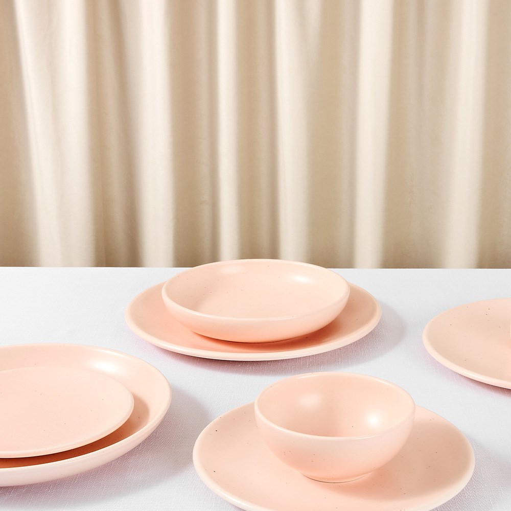 • Semi-matte pink salt glaze with natural speckle detail