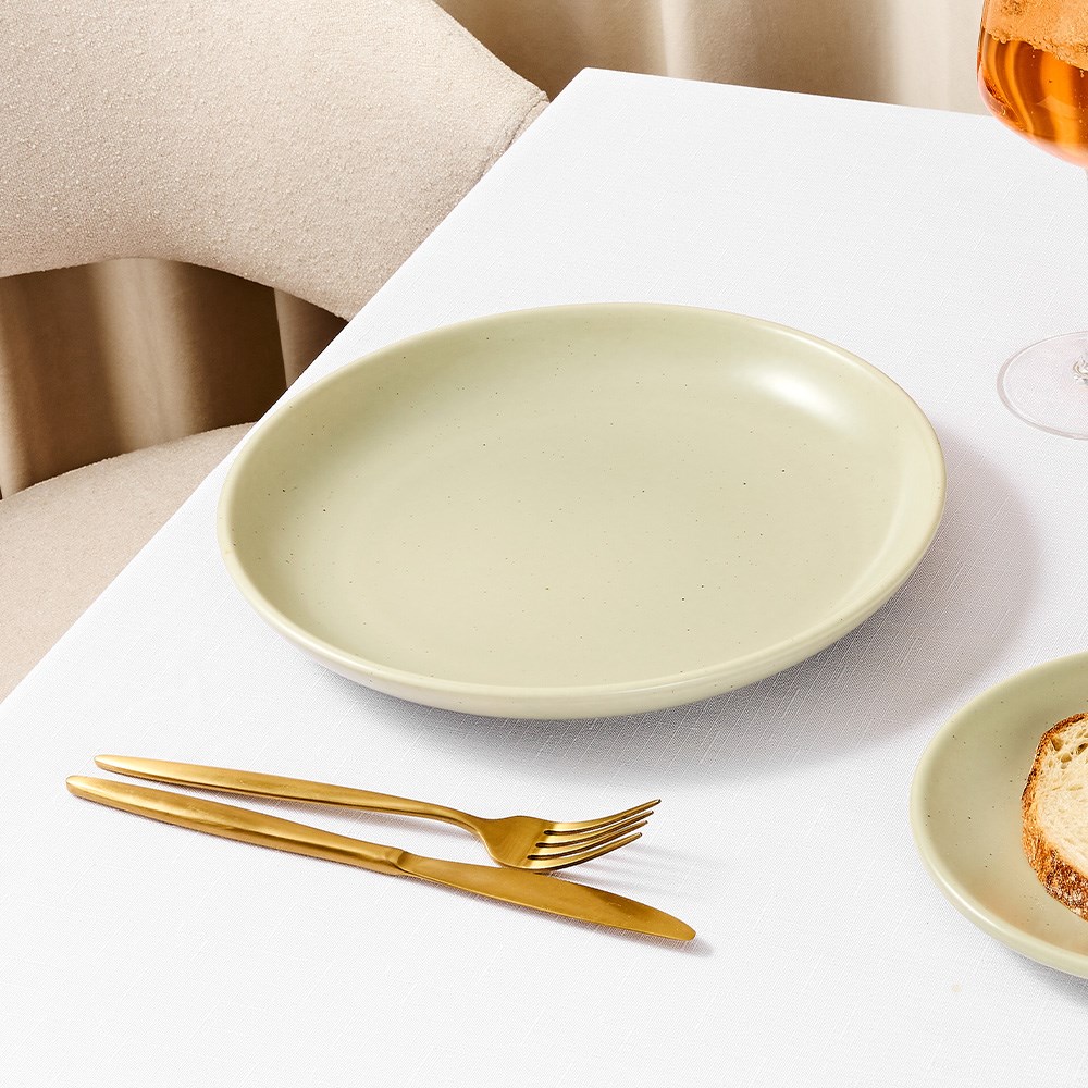 • Semi-matte sage glaze with fine speckle detail