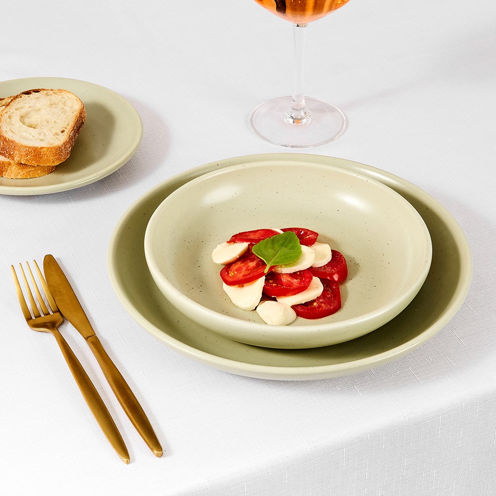 Bring a touch of refined tranquillity to your tabletop with the Infusions Coupe Bowls in Sage by Accolade. These bowls combine modern elegance with outstanding commercial performance, making them ideal for restaurants, cafés, hotels, and catering venues. Crafted from fully vitrified, alumina-rich porcelain, they deliver superior strength, chip resistance, and durability for everyday use in professional environments. The calming sage green tone, finished with a semi-matte glaze and subtle speckled detail, adds an organic sophistication that complements a wide range of menu styles and dining themes.