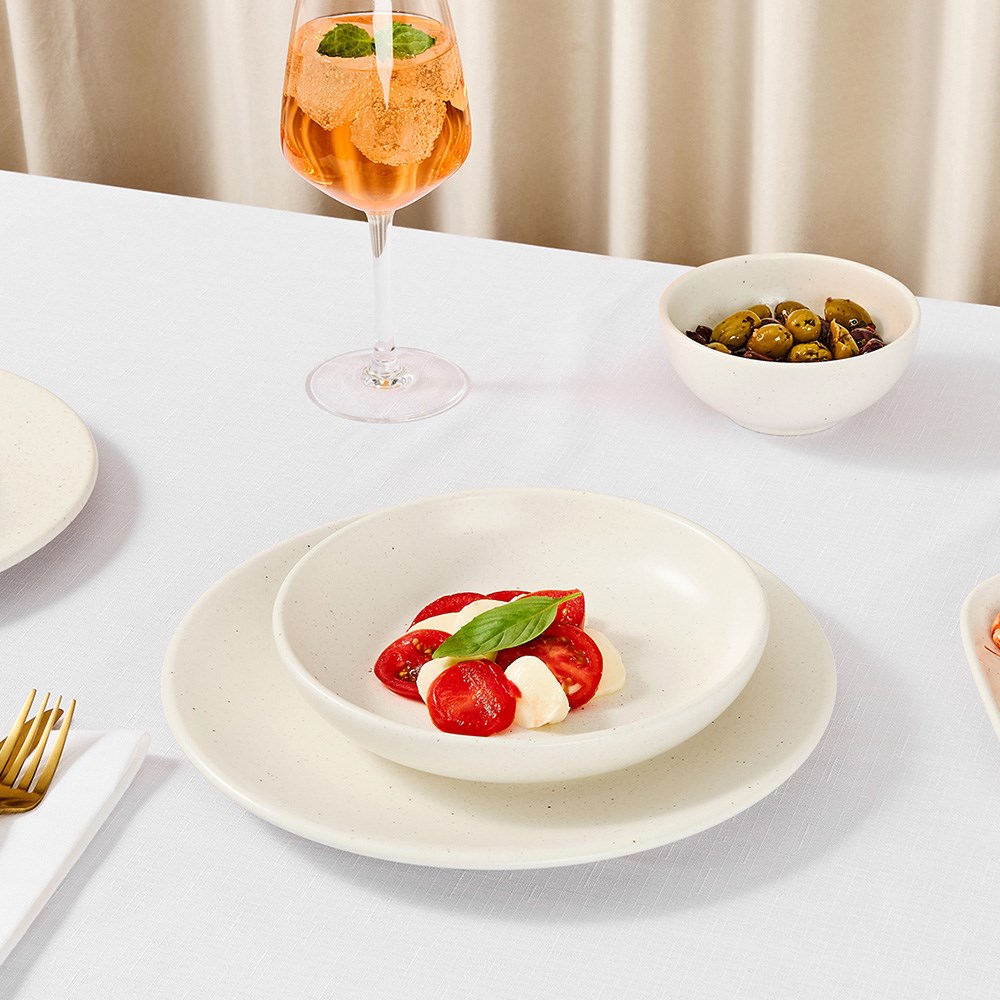 Elevate your table setting with the Accolade Infusions Coupe Bowl in Vanilla, 200mm. This bowl is crafted from fully vitrified, alumina-rich porcelain, which provides outstanding strength and chip resistance, making it ideal for commercial hospitality environments. Finished in a warm vanilla hue with subtle speckled detailing and a semi-matte glaze, it creates a sophisticated, natural look that pairs beautifully with a variety of table settings. The coupe profile offers a modern, shallow shape that enhances food presentation, making it perfect for salads, pasta, risottos, or hearty desserts.
