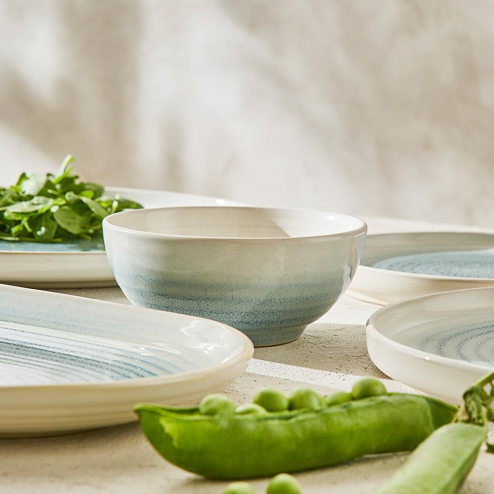 The Pro.mundi Pacific Rice Bowl has a shiny finish that reflects light beautifully for a polished, elegant look. This also makes the surface easy to clean and resistant to staining. The bowls are also dishwasher and microwave safe, offering convenience and easy maintenance for busy hospitality venues, like catering services, restaurants, resorts, and hotels. Each bowl is unique due to the reactive glaze, giving the table a handcrafted feel that elevates the dining experience.