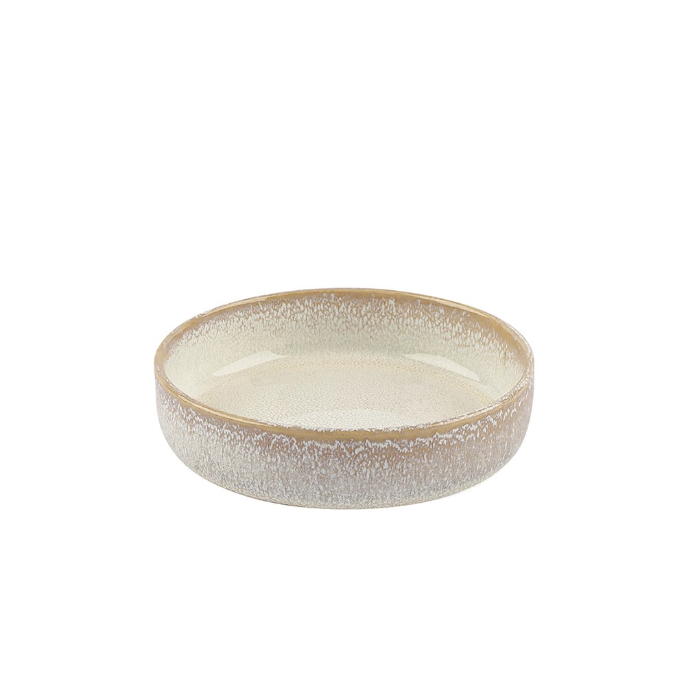 The Pearl Side Dish White 155mm Pro.mundi from the Pearl range adds a touch of elegance to your tabletop. With its Nordic-inspired design, the dish features high edges and an earthy texture that complements any cuisine, from starters to desserts. The white-washed colour enhances your dishes, making them look even more appetising and refined.
