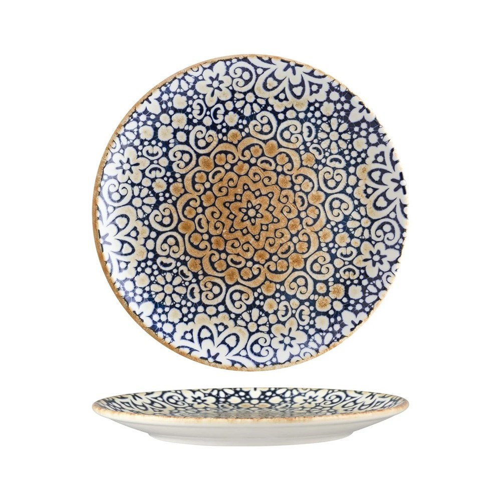 Bring timeless elegance and lasting performance to your tabletop with the Alhambra Round Coupe Plates by Bonna. Designed for commercial use across bars, cafés, pubs, and restaurants, these vitrified porcelain plates showcase Bonna's signature mosaic design featuring crackled blues, creams, and caramels. Their rich, earthy tones add warmth and sophistication to any setting, complementing a wide variety of dishes from breakfast service to fine dining presentations. The coupe shape provides a modern edge, making them ideal for serving mains, entrees, or desserts with refined style and durability.