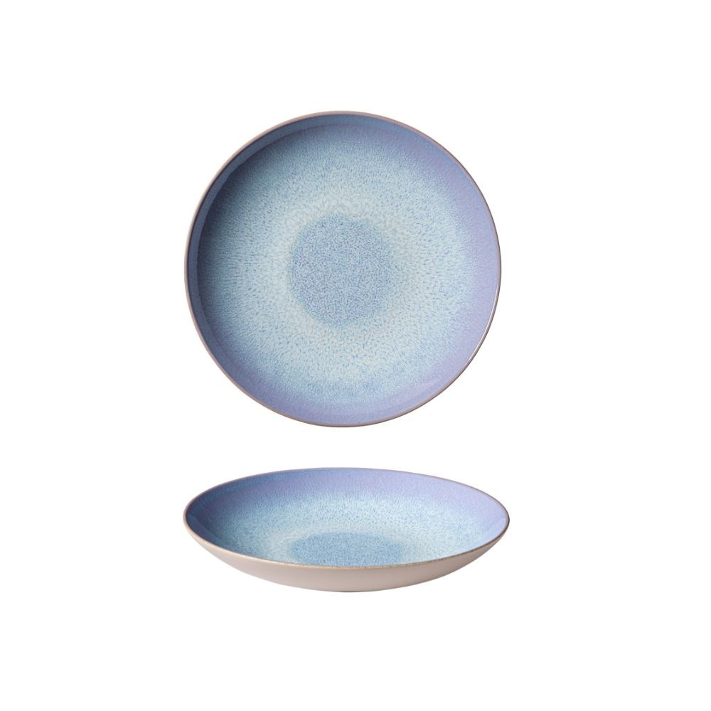 The Azure Deep Coupe Plate 230mm Accolade combines elegance with durability, making it perfect for professional dining settings. Its gradient sky-blue glossy interior contrasts beautifully with the matte exterior, creating a striking visual effect that enhances food presentation.