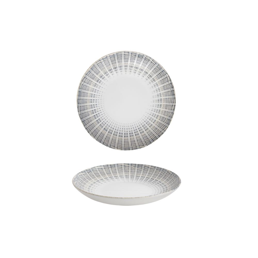 The Granada Deep Coupe Plate 230mm Accolade combines refined design with practicality, making it ideal for demanding catering environments. Crafted from high-quality porcelain, this plate features a subtle decor of blue and beige hues on a bright white background, evoking freshness and softness while complementing the vibrant colours of your dishes.