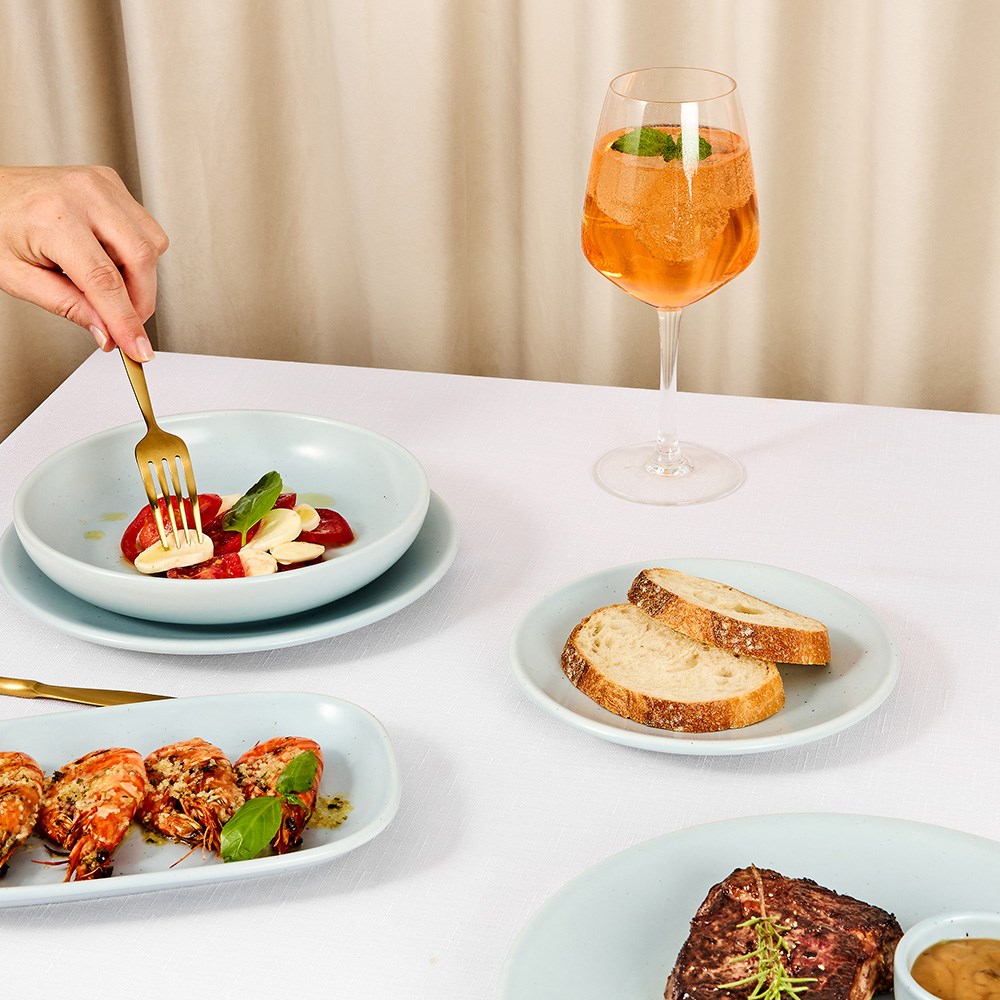 Bring a refreshing and contemporary look to your tabletop with the Infusions Coupe Plate 180mm in Juniper by Accolade. This coupe plate combines aesthetic with the resilience required for commercial hospitality venues. Crafted from fully vitrified, alumina-rich porcelain, it delivers exceptional strength, chip resistance, and long-term performance. The cool juniper-blue tone, enhanced by a semi-matte glaze and delicate speckle detail, introduces a calm and coastal feel to modern dining settings. This versatile colour complements a range of cuisines, from fresh seafood and vibrant salads to breakfast dishes and desserts.