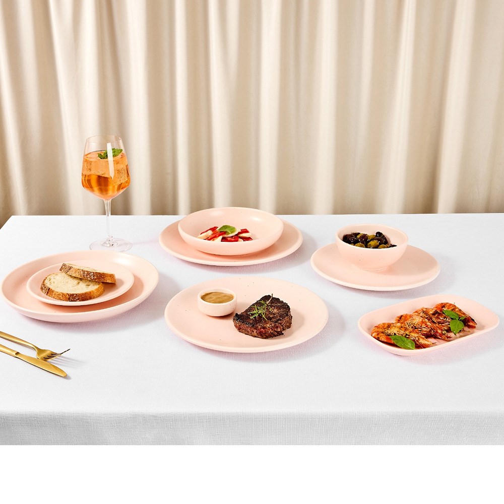 Bring a soft, contemporary touch to your tabletop with the Infusions Coupe Plates in Pink Salt Accolade. These plates are crafted from fully vitrified, alumina-rich porcelain for exceptional strength, chip resistance, and long-term durability in demanding hospitality settings. The delicate blush-pink hue, finished with a semi-matte glaze and fine speckled detailing, creates a calming and modern aesthetic that elevates food presentation. Their warm tone beautifully complements light, colourful, or plant-based dishes, as well as desserts and breakfast offerings. The smooth coupe profile provides a clean canvas for creative plating while maintaining everyday practicality.