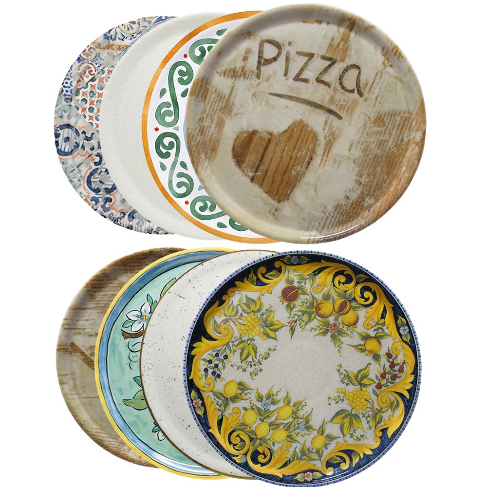 The Round Pizza Plates 330mm by Saturnia bring Italian artistry and durability to any table setup. Crafted in Italy from premium porcelain, these plates feature unique and several designs for each range. The hand-painted style artwork creates a presentation ideal for restaurants, trattorias, wine bars, farm-to-table venues and rustic themed dining environments.